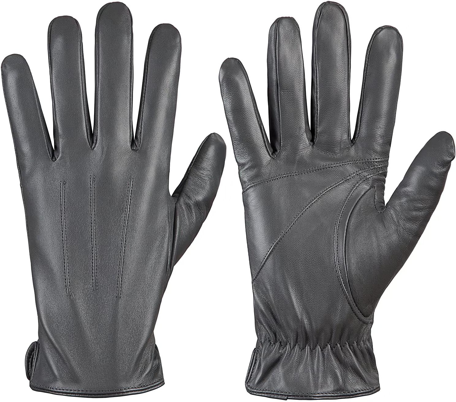 ALEPO GENUINE SHEEPSKIN LEATHER GLOVES FOR MEN, WINTER WARM TOUCHSCREEN TEXTING CASHMERE LINED DRIVING MOTORCYCLE GLOVES (GRAY-S)